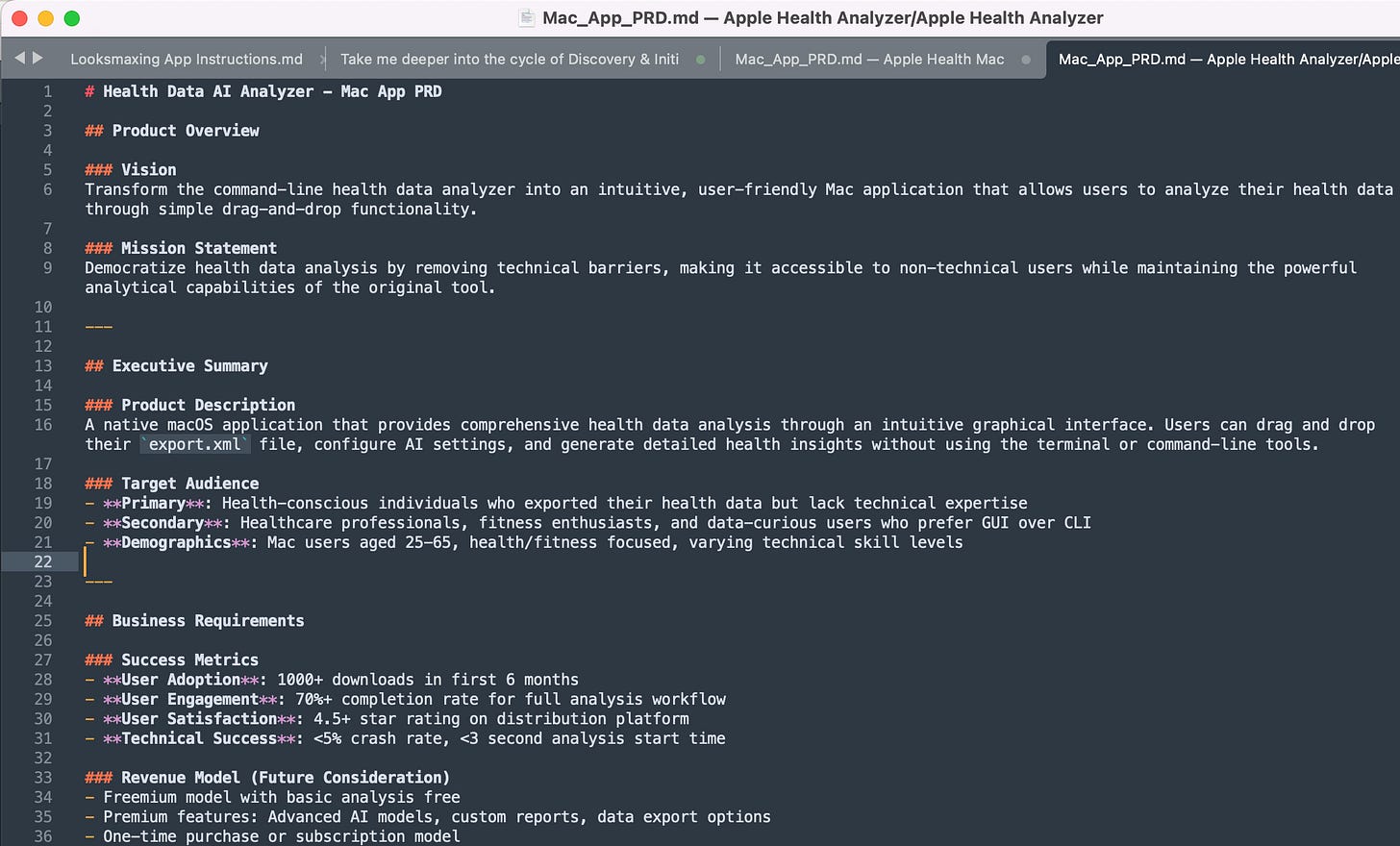 First thing I did was create a PRD. My PRD looks something like this.